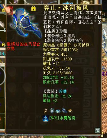 从原先的4阶龙,到现在的16克火,小平民装,抛砖引玉下。 1.这一套下来,属性上基本够用,任务副本基本不会空炮。 2.除了腰带是默契的单连击的,其他配饰都是无默契的,大家可以借鉴下。 3.魔王窟懒人,套装目前珍藏品质。护身符换下,项链换下,套装品质提升下,克火可以再提升80点左右,细节跟上可以更强,目前也还算够用。 有兴趣的小伙伴可以留言交流下,元宵快乐!