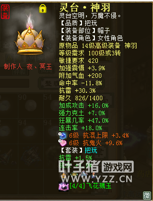 3年多没玩了,最近假期又入坑,金鳞口袋连着点了2周多没出一个,把装备贴出来给玩敏力的一些参考: 159级,鞋子打的血宝石,550力量,范式卡满修正:10W血,9W功,2150敏,连致狂满,无属性92,鬼火满,4抗仙法60左右. |
