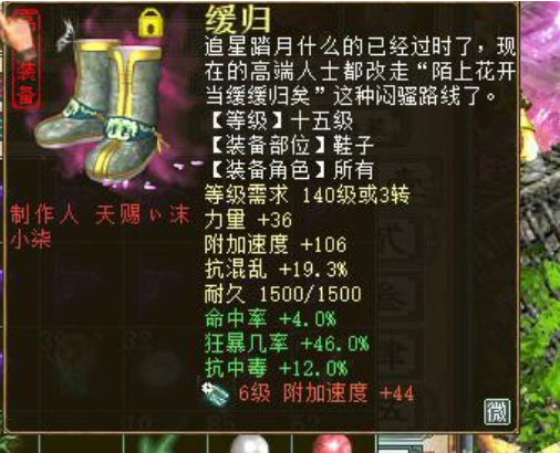各位大话西游玩家们大家好,今天给大家带来的一个大神搭配展示是可以两回合搞定14和15星的噢,学会了是不是就能乱杀呢,我们先放出这位大神的个人面板,具体装备在下面噢,大家快来看看吧。 个人面板 接下来就是具体的装备展示啦,大家快来学习学习吧! 装备展示 鞋子 衣服 帽子 披风 面具 护身符 以上就是两回合可以完成14和15星战斗的装备搭配了,希望大家可以在学习的同时有自己新的搭配感悟噢。 [编辑:叶子猪小秘书]