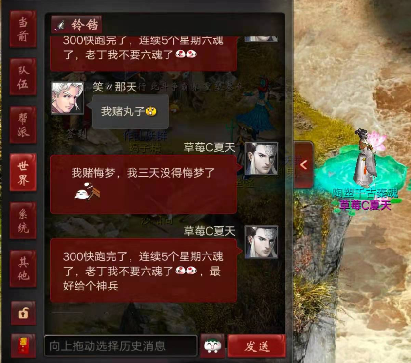 玩家连续5个星期300环获得六魂,今天世界高呼,希望不要在给这么垃圾的奖励,求得神兵或者悔梦是否可以? 还有玩家起哄要给丸子,究竟能得什么?一起来看! |