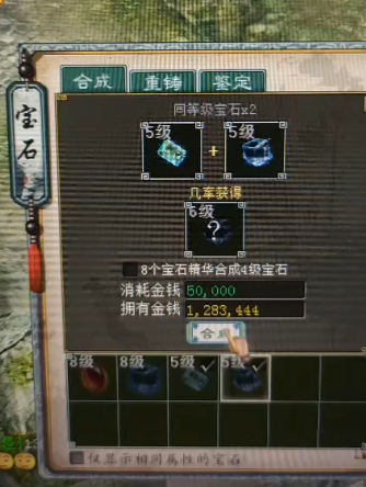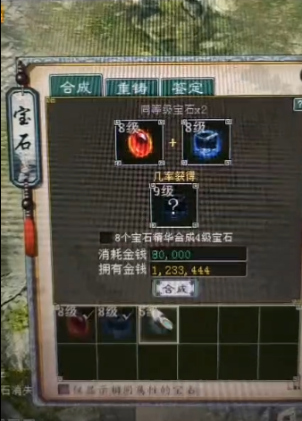 一玩家准备了4颗宝石,2颗五级,2颗8级,让我们一起来看看,这孤注一掷的豪爽能否换来一颗9级宝石的容颜! [编辑:宁财神]