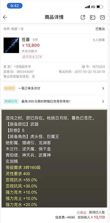 大话西游2之前卖了妙音和一把五阶 现在算算亏多少
