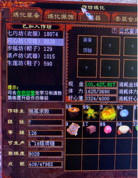 玩家说,他是为了功绩才升的作坊。熟练度还很低,没想到连着毕业2个项目。这是我从玩大话以来,这十几年最高光时刻了! 可惜第二条项链抗性拉胯了,早知道换个好点的底子...... [编辑:宁财神]