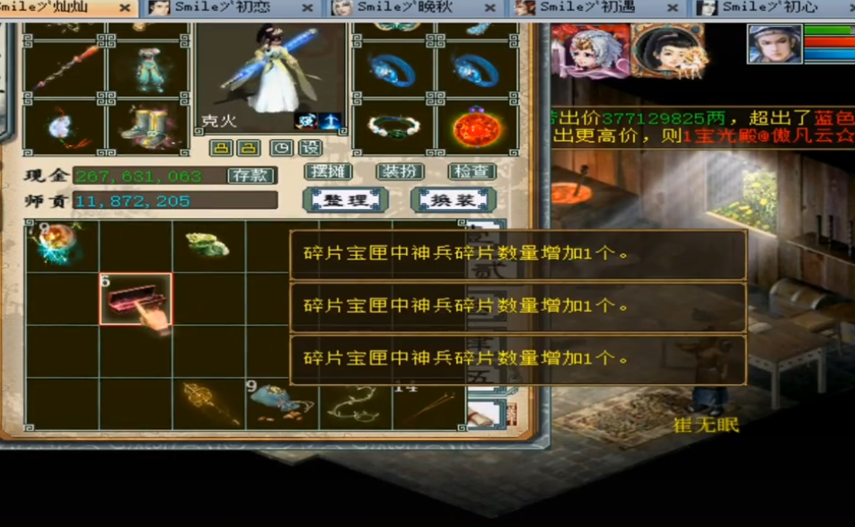 自从多了神兵碎片可交易的玩法后,众多爱好博几率的兄弟们简直玩得不要太嗨! 今天这位兄弟就斥“巨资”购买了大量神兵碎片宝匣,并给自己的六个号全部吃满了50个神兵碎片,直接来一个神兵6连换...咱再也不用等地宫攒积分啦! |