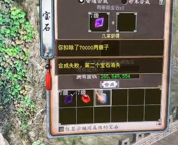 玩家准备了4颗7级宝石,准备硬刚一下8级,最后成功圆梦,没想到这位老铁依然不满足,他拿出了他珍藏的8级宝石....来看结果吧! |