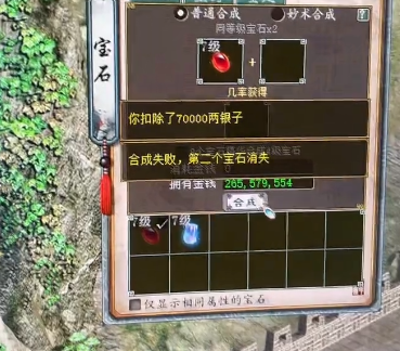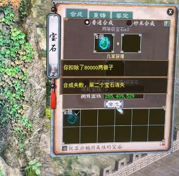 白忙活了,看来这个宝石合成没有点运气加成的话,还真是不要轻举妄动啊!