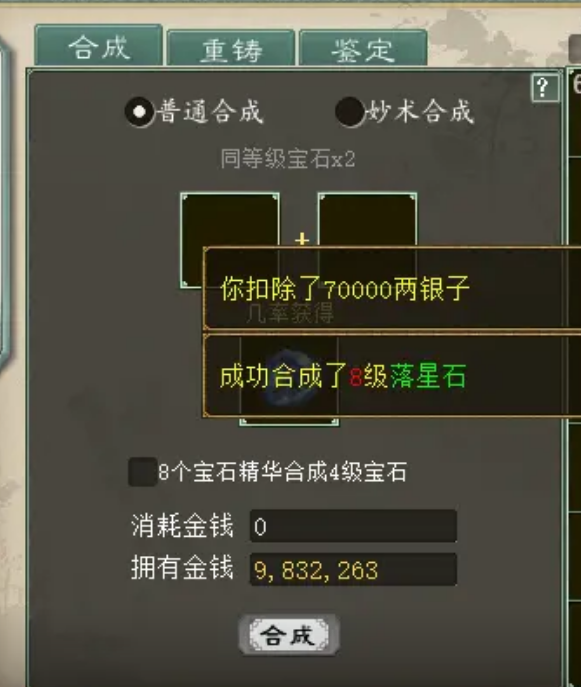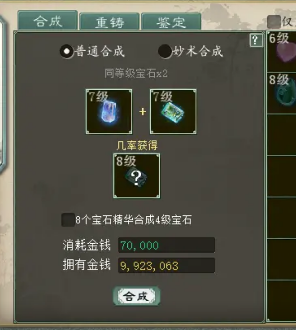 这位玩家说,自己合宝石竟然连一块五级都没成功,一怒之下,他拆下鞋子上的宝石开始挑战8级,一起来看看结果! [编辑:宁财神]