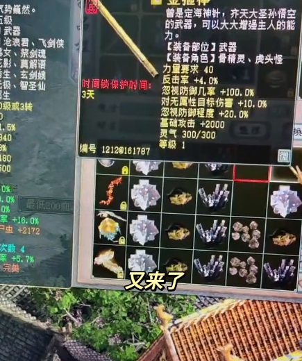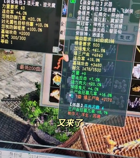 这位玩家准备了四把破物理神兵和一双藕丝,想要试试手气,结果相当地惊心动魄,真是神仙结局!