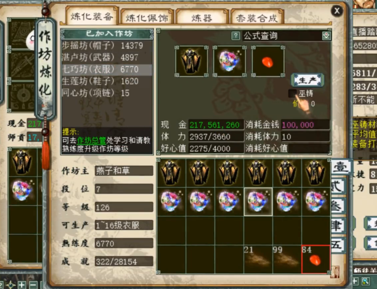 汉广大佬巫铸了六件男人衣服,没想到今天运气大爆炸,出了两件属性非常不错的装备,各位一起来欣赏下,这两件装备能卖多少! 开始巫铸