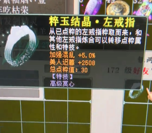 大话西游2点粹系统推出后,为了使自身获得更加出色的能力,对于配饰点粹的打磨就成了必做功课之一。 今天就为大家展示一位男人玩家精心打造的点粹配饰,整体属性看下来,感觉完全可以用“极品”来形容了! 高级赏心,点粹30强混5.0戒指