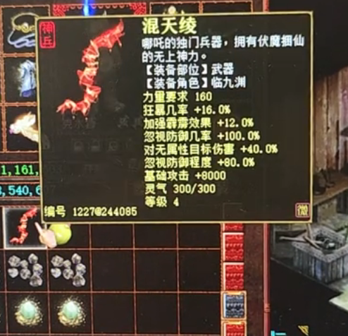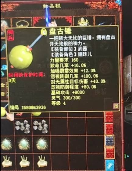 这个运气也是有点差,5把神兵只有一把上4,希望他能早日砸出5~6级霹雳破!