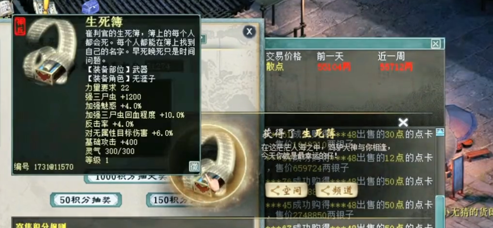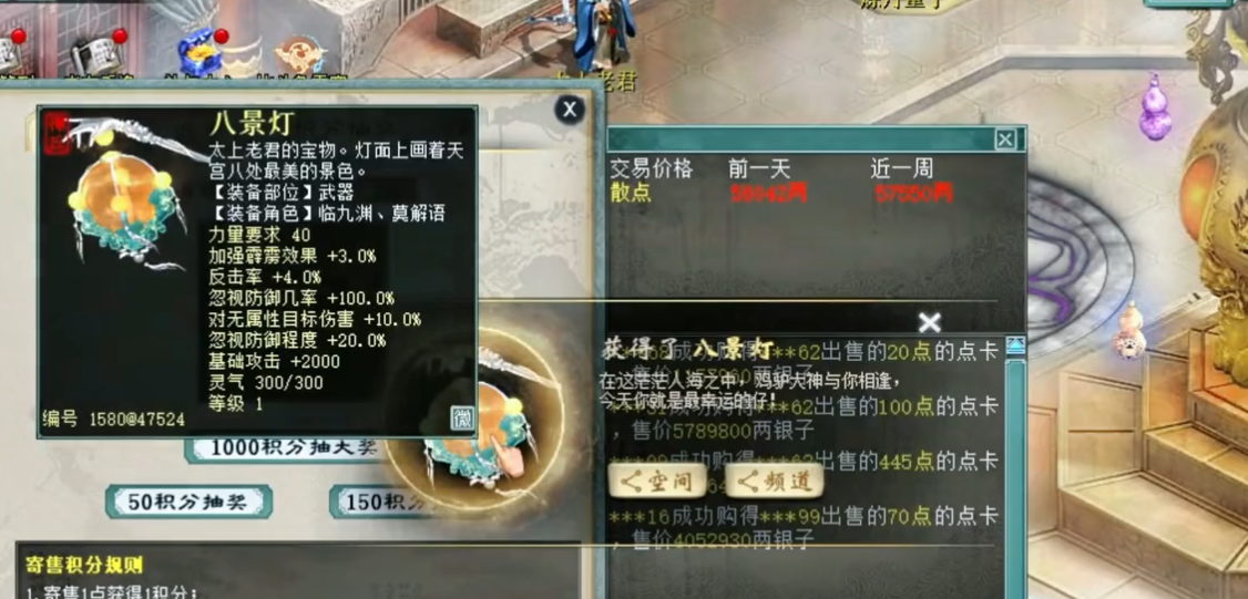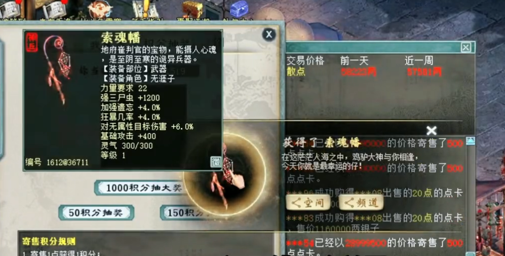 大佬展示大话西游2点卡积分收获,在短短一周的时间里,他居然获得了九把神兵,这得卖多少点卡啊? |