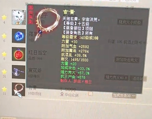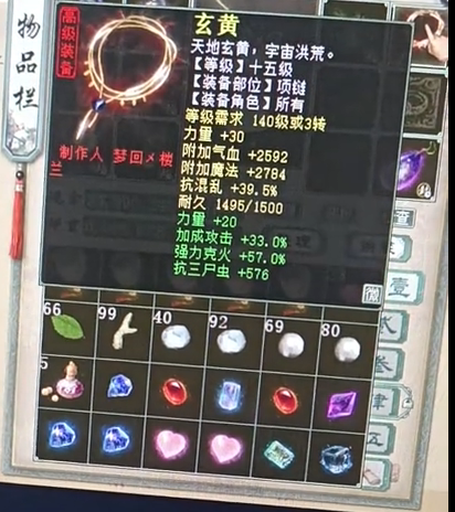 大话西游2五行克目前最流行的就属克水、克火了,克水是因为PK用的人多,克火则是因为有惊鸿/容止套的存在,日常伤害舒服,今天我们要展示一位克水500+的大力,他砍16星能砍出700W的夸张伤害,而近日他准备换成克火魔,下面就来欣赏下他的几件克火装备,以及大力克水属性! 收藏的武器和项链,价值1W的项链