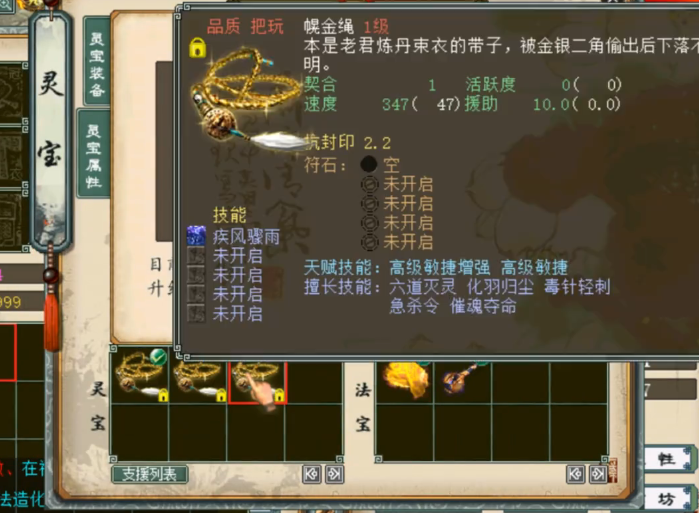 大话西游2超级灵宝合成中,如果出现顶级属性,那真是价值万金了!来吧,今天这位兄弟就连合多枚灵宝,咱们看看会出现什么! 先来一个号