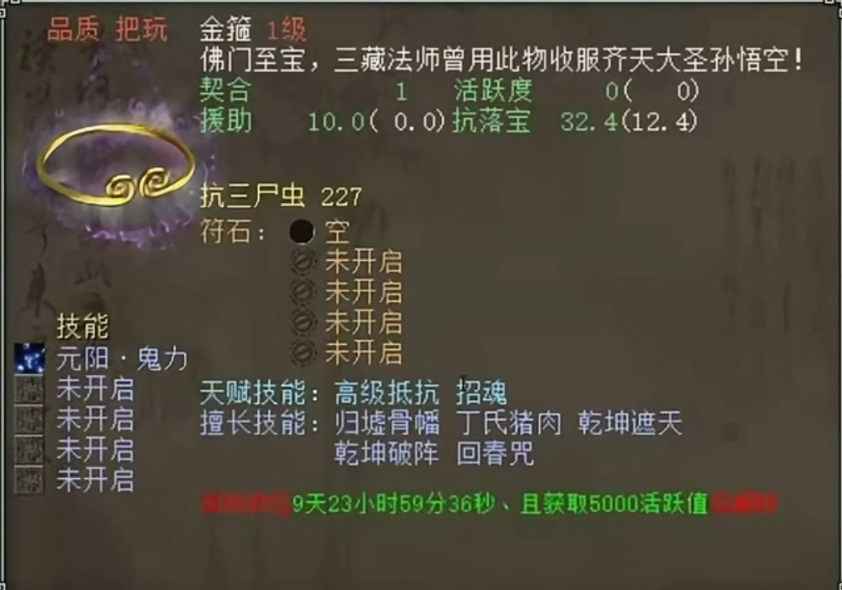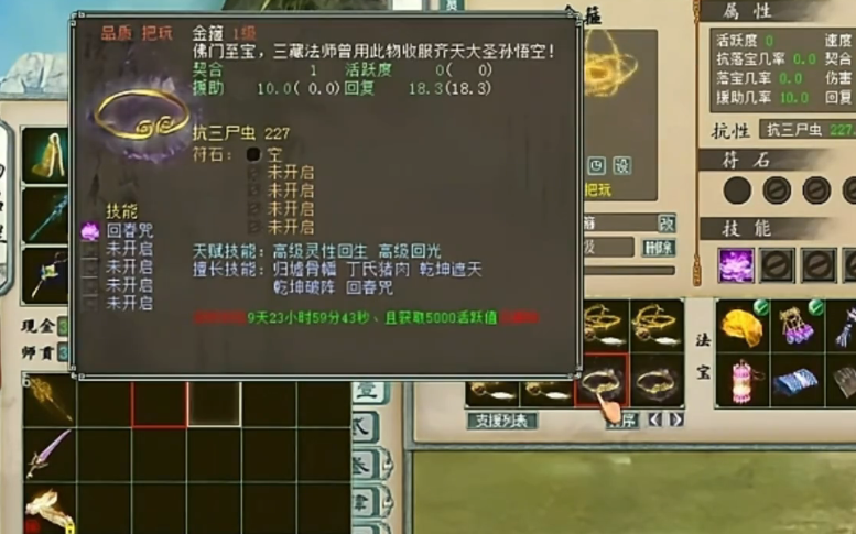 连合3套大话西游2超级灵宝,竟连续出现三顶金箍,而最后一件的属性相当不错,和以往的天价灵宝极为贴近,兄弟们速速来欣赏! 合成超级灵宝金箍