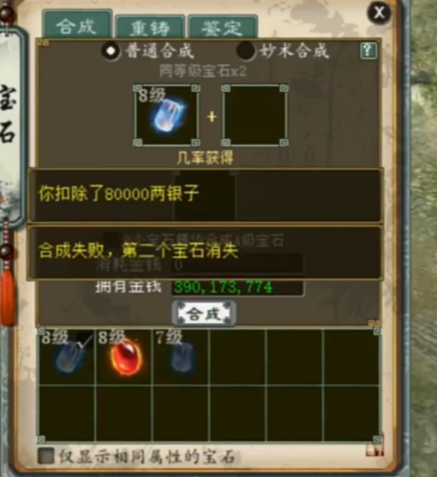 不用宝石精华,也不从低级开始,今天这位兄弟直接用大话西游2八级宝石合成,而整个过程也是看得人心惊胆战,至于最终结果嘛,咱们还是一起来见证吧! |