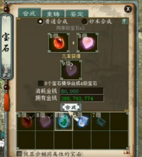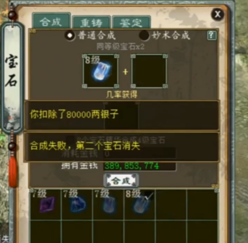 大话西游2胆子大才能骑龙骑虎!九级奇异石诞生之路 不用宝石精华,也不从低级开始,今天这位兄弟直接用大话西游2八级宝石合成,而整个过程也是看得人心惊胆战,至于最终结果嘛,咱们还是一起来见证吧!