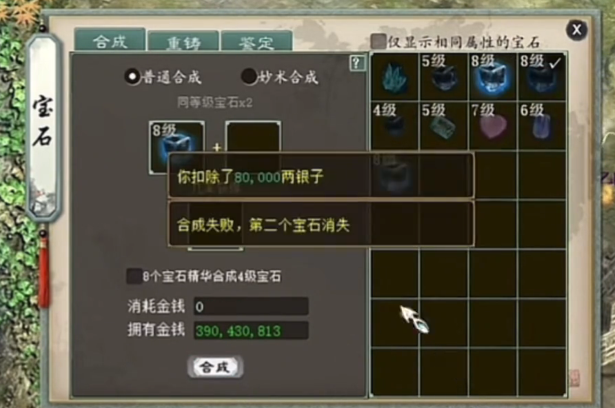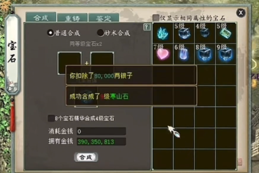 碎了不少啊,这也太心疼了!最终合成一块9级105价值的宝石,兄弟们觉得这波是亏是赚呢?