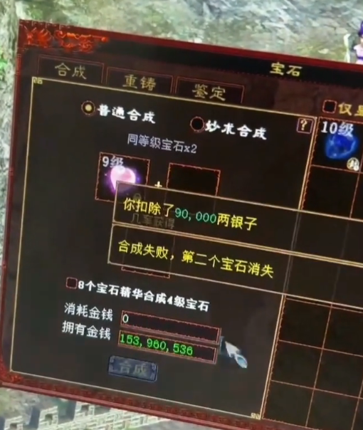 合成10级宝石的过程,总能让人感到心魂震荡,因为只要碎裂一次,就会瞬间损失五位数......下面就来感受下大话西游2十级宝石合成现场,看看主人运气如何! |
