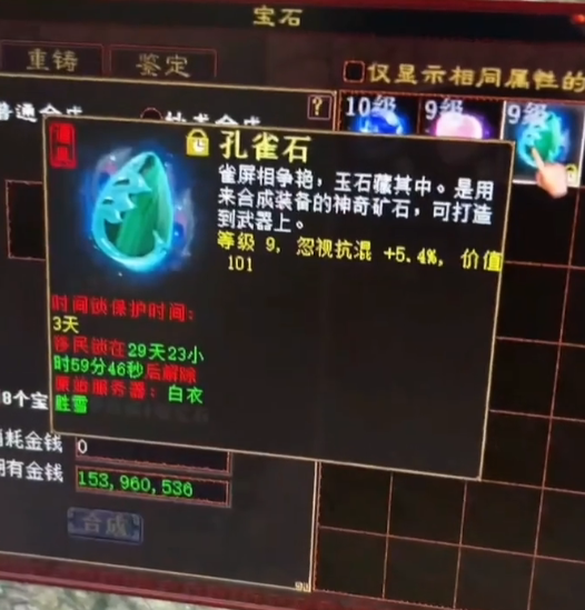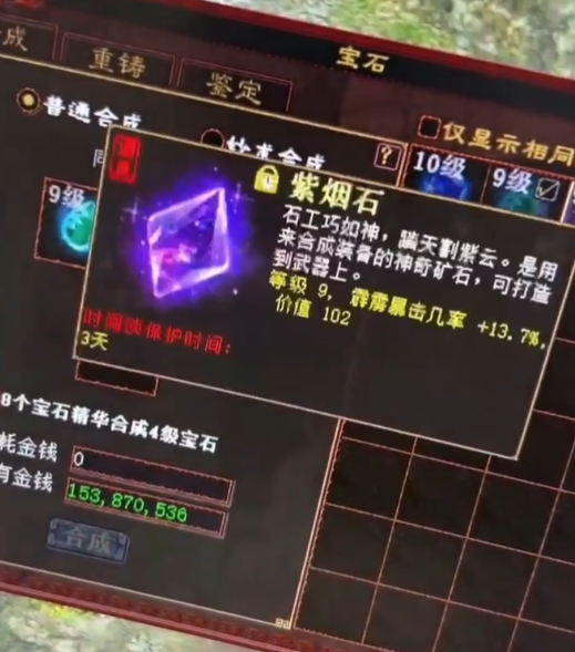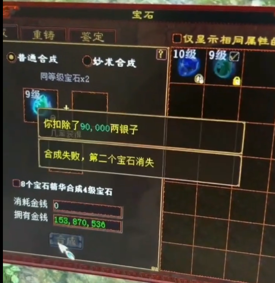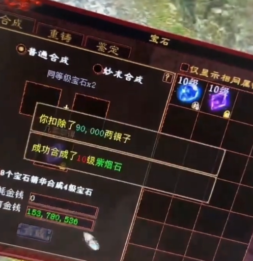 合成10级宝石的过程,总能让人感到心魂震荡,因为只要碎裂一次,就会瞬间损失五位数......下面就来感受下大话西游2十级宝石合成现场,看看主人运气如何! 9级孔雀石
