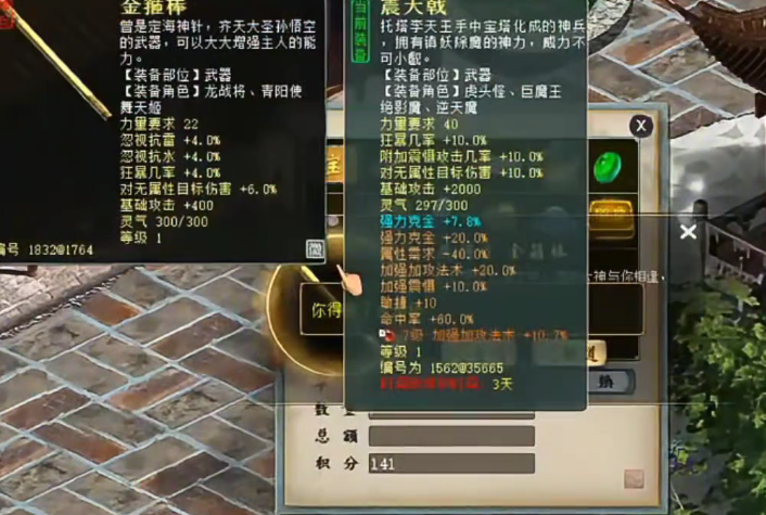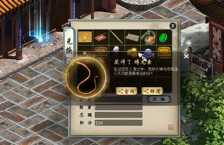 辛苦大半年,积分又够兑换大话西游2地宫神兵了,咱们看看能否来个开门红,弄双小黄鞋穿穿! 第一个,鞭子一条,属性都不需要看