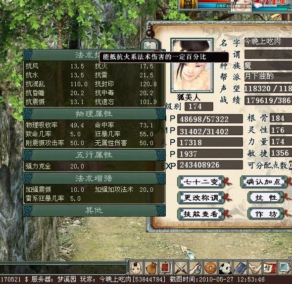 女魔号:转生路线:女魔、男魔、男魔、女魔.(没转前牛没法满)练的坐骑有4.5.6坐,其中六坐为魔族六坐,满筋骨。 男人号:转生路线:男人、男人、男人、(没转前睡法也没满)练的会骑有12.5.6坐、其中一坐骑一次筋骨、6坐骑人族坐骑满筋骨、2坐骑熟练没满.. 女魔号主带三个宝宝、泥巴、高成长精卫、高成长麒麟.都160级了,还有二转雷兽,三转高成长满初值水灵,三转猴毛,一转高成长满初值黄金。 有二种属性,一种全敏,一种连击附吸附混。 |