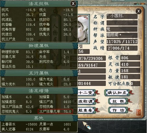 剑丹琴心三尸虫狂暴几率70的男鬼