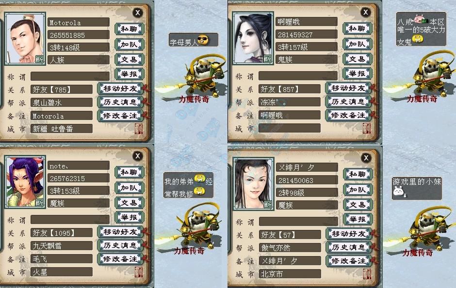 还有我的好朋友们,字母男人天天带我们修,八戒是5破大力女鬼,还有我弟弟,天天帮我修我很懒的。,还有个游戏里认识的小妹,来张大合影吧。 |