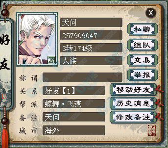 皮皮:天问,你好,我是叶子猪大话历史恩怨版的版主草莓皮皮 天问:什么事 皮皮:嗯,有爆料因为采访来的,是一只钓鱼和大浪的事情, 天问:怎么了? 皮皮:我已经采访过一方当事人了,想找你补充内容,因为采访不能仅凭单方面 天问:她愿意怎么说你找她说东西是我的我没必要像任何人解释.. 皮皮:在采访的时候,我不喜欢仅听一面,你说呢, 皮皮:你可以把你想说的,对我说,我会原本写出来的, 天问:那和我没有关系因为截图我都给大家看过..是她说送我的.不要回去.东西是我的.我没必要和别人解释吧? 皮皮:能和你索取截图嘛? 天问:我在网吧上网呢..截图什么的都在我单位的笔记本电脑上.. 皮皮:那先简单聊聊,截图明天给我可以嘛?我的号是心々血落,号我弟弟玩着,密,保我现在一时找不到,注册了个小号,不能主动加你好友,才和别人借了这个号,我很有诚意的, 天问:我都说了..这事我不需要和任何人解释..我也没必要解释呀..大刀是我的.钓鱼也是我的.她如果有本事说是她的.你让她自己找回去知道吗..用什么方法可以证明东西是她的,你有没有诚意是你的事这事不用和我说..好吧... 皮皮:在我眼里只有论坛的会员和真相,我原本是心家族的,我不会偏私,想了解事情,近量的接近事实写出来,遵重论坛的会员,你说呢?可以聊聊天嘛? 天问:我觉得没什么可聊的因为我很忙不好意思在说聊那种恶心的人我也不愿意身上所有东西都不是他自己的还不够恶心吗哈哈 皮皮:我还是想把采访弄的更清淅,想听听你的真心话和心里话啊, 天问:我现在没时间..也不想和你谈什么..因为我觉得没必要OK? 皮皮:那好吧,祝你玩游戏愉快。 天问:谢谢 皮皮:有什么想说的,也可以随时来找我,我的版块有我的名字,点开名字就可以看到我的扣扣号, 天问:应该没什么的..呵呵..我也准备清号呢..没什么意思现在玩的 皮皮:有的事情,说出来也没什么,我本来想问你几个问题的,你可以不回答,但是我还是问一下, 天问:你问吧 皮皮:据我了解的情况是这样,先是你们原来是夫妻,交换了大浪和钓鱼玩,但是钓鱼还是她的钓鱼,大浪还是你的大浪,所以你让她把大浪给天暴卖掉,她给了,大浪还在你那里,离婚后你不肯给她,对于我这个了解是不是属实,因为在我要这样写采访稿的时候,我想知道是不是真的这样,所以想通过你多一程了解下,第二,是我自己的想法,她说离婚是因为,你现实女朋友知道了你们的亲密,生气了,所以你点了离婚,删好友,删YY,,通过这个,我觉得,你不肯还大浪,是不是因为这个游戏婚姻的不美满,两人发生了什么不愉快的事情, 天问:大浪是我卖给我朋友的..我以前说过和他换..但是他没换.他说我要卖就不要换. 皮皮:你的大浪现在你卖出去了,钱收到了嘛?这样的话,原本放在她那里的大浪你拿回去了,她的钓鱼还在你号上是这样嘛,还有第二个问题,我没有写完,信,息太长,无法发送,是不是因为你们游戏婚姻不美满,两人发生了不愉快,所以你为了以示惩戒,不肯还给她钓鱼,你也有你的原因,这是我想问的第二个问题 天问:我现在听你说了半天啊..我觉得这女人很虚伪..让我感到很恶心我不想往下谈了..她恶心的要命...东西呢都是我的.和她没有任何关系. 皮皮:那我可以问一个很直白的问题嘛,钓鱼的来源是什么,任务得的还是买的还是送的还是她和你换着玩的,不好意思啊,我不是问罪,我只是点开疑惑 天问:这东西明明就是我的.和她没有任何关系知道吧..我的东西我想给她是我想给她.我不想给她就不给她..因为东西是我的.明白吗?钓鱼一开始是她的.我说我想买一个.她说她用不到.我说我买她的.她不用.最后就送给我了.我说你想玩大刀可以拿去玩.前提是我打算卖的大刀.她也没要.后来我非要给她让她玩,后来卖的时候她又还我的. 皮皮:哦,那我第一个答案有了,谢谢你的回答,那么第二个问题呢,我总是觉得有什么事情,你对她不认可,你们有了矛盾,才发生至你不给她钓鱼,是什么事情呢? 天问:这个问题我不愿意去讲..她自己干过什么自己知道说多了挺没意思的哈哈.我忙了.你玩吧 皮皮:恩,好的,她给我提供了几位好友的聊天记录,我会一一去证实,你有没有好友,可以帮忙提供资料,方便接近事实真相的嘛,我也可以去采访, 天问:随便她怎么弄吧..她就是个恶心的人..说他..我都闲恶心 皮皮:呵呵,不提供其他好友,我要去采访别人了,为了你自己,我真的希望你能找了解事情真相,帮你说说话的人,真的,我只想想更接近事实,多问问几个人,事情到底是怎么回事,