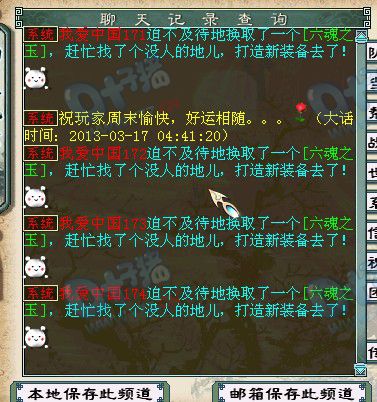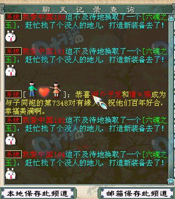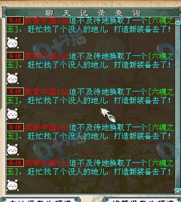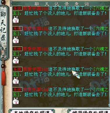 周末在做任务,然后看到“我爱你中国”这批工作室小号在兑换地宫奖励,满系统频道都是在提示我爱你中国迫不及待兑换六魂之玉,好多,红了,也不嫉妒羡慕恨,毕竟人家背后也付出很多劳力。 推荐阅读:大概8.20发:轩辕队诚招全能女人 <<<点击进入大话西游2论坛讨论>>>