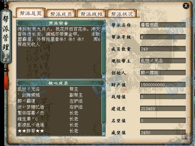 大家好,我是山西新区暮雪烟霞的帮主乱世メ无名,同时也是本区第一大帮公敌的主力,由于本人现实生活的作息时间和大话水陆帮战的时间冲突,而且最近没有合适人选帮我上号,所有忍痛告别大话,找一个能接我班的人。