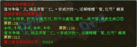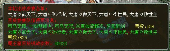 第三届比武大会将在明天下午2点正式开打,今天下午各服务器的出线队伍名单火热出炉! >>推荐阅读:比武大会部分服务器报名对比调查 大将生来胆气豪,腰横秋水雁翎刀 风吹鼍鼓山河动,电闪旌旗日月高 天上麒麟原有种,穴中蝼蚁岂能逃 太平待诏归来日,朕与将军解战袍 东风吹,战鼓擂,比武大会谁怕谁。群雄逐鹿,究竟鹿死谁手。 下面,我们简单的分析一下!从整体来看:三个级别必将发生各种强强对决;就报名而言,有部分服务器没有参与报名比如:一级别的彩云之南,三级别的长相思他们都缺席此次比赛,确实遗憾!而对于报名的参与度来看,我们看到少数火爆的服务器依然出现买票的事件,比如兵临城下,说明玩家对这个赛事还是非常热衷的,而有的服务器在互相队伍熟悉之后采取了谦让的态度,让某一个服务器出去,不得不说这是一种大义,比如汉乐府。在此希望所有参赛的队伍都能打出应有的水平,打出自我的风采,展现真正的实力,同时也为玩家奉献更好看更绚丽的战斗效果,带来全新具有冲击力的战术! 注:以下统计源自叶子猪记者团所有记者净心合力之作,还有部分热心肠的玩家积极参与。感谢大家的支持与配合,感谢大家特地建号去所在的服务器给我们取得第一手真实有效的资料,同时也感谢那些在背后默默支持我们的玩家,因为有你,叶子猪会更精彩! 与此同时,周末比武大会的直播,还请大家锁定YY90019,我们将为大家呈现最有好看,最有节奏感,最富渲染力的精彩赛事,当然还有非常激情的解说!明天(5.25)下午2点不见不散! 报名表如下: (第一级别:由于彩云之南没有报名参赛的队伍,所以不在下列统计中;第三级别:由于长相思没有报名参赛的队伍,所以不在下列统计中) <<<点击进入大话西游2论坛讨论>>>