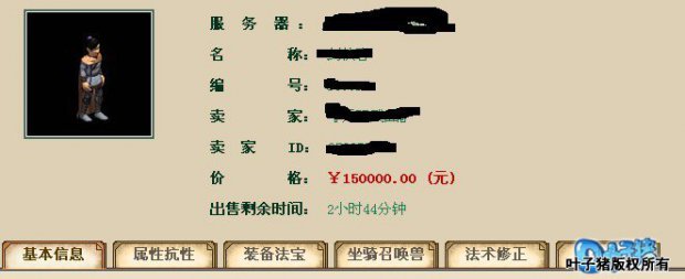 藏宝阁标价十五万元的男人号,六件仙器,有年和颜如玉及老版神兽。请勿见怪隐藏服务器名称和ID,我们的目的很明确,就是为大家养养眼,下面请大家鉴赏此号。