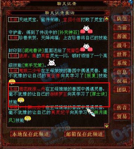 尘缘未了的玩家:烟花寂凉丹于凌晨3点多在园子里拉起了领悟高级技能的大节奏!在一次园子里领悟了两次信土,一个分花,一厚土,一牵制,真心让人羡慕!