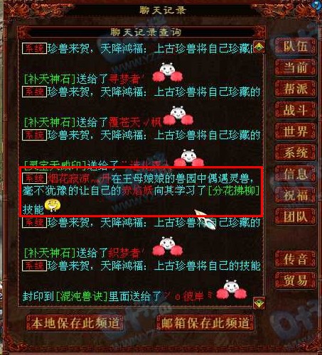 尘缘未了的玩家:烟花寂凉丹于凌晨3点多在园子里拉起了领悟高级技能的大节奏!在一次园子里领悟了两次信土,一个分花,一厚土,一牵制,真心让人羡慕!