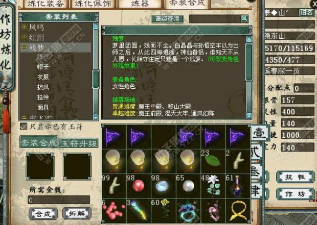 >>推荐阅读:生财有道:玩家打酱油也能赚得盆满钵满 这个号码是1-4年的区,男魔和女魔双修正,天赋42点,师门贡献4000W,师徒积分22W,套装可以上图。孩子养了3个,我有残梦套装但是没有收录,现在只有一套凤鸣的装备,不抗冰,我是花溪春深的ID:297842586,电话:15954610166。 大体说下:雅声3件、罗莎5件、残梦缺1件、霄汉缺1件、燃灯缺1件、洞天好像是缺2件、星魂20个左右、大雁塔的装备有、大雁塔的院子不缺令牌…… <<<点击进入大话西游2论坛讨论>>>
