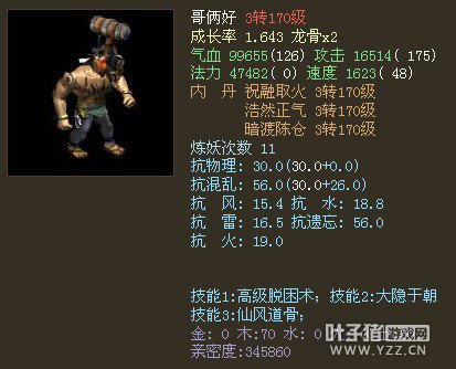 >>推荐阅读:第六届天下第一比武大会:十大精彩录像 4年火爆区汉乐府出售此满天赋成品飞升149鬼号,满天赋,功绩3790。带2个4阶,4级双回、4级人法BD,套装齐全,装备宝宝齐全,有神兽五叶、变色画皮、神出宝宝、义金信土宝宝亲密50W以上。3套装备,极品克金三尸套。 <<<点击进入大话西游2论坛讨论>>>