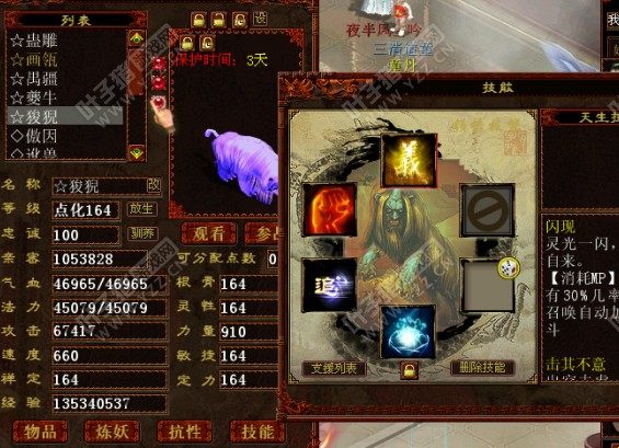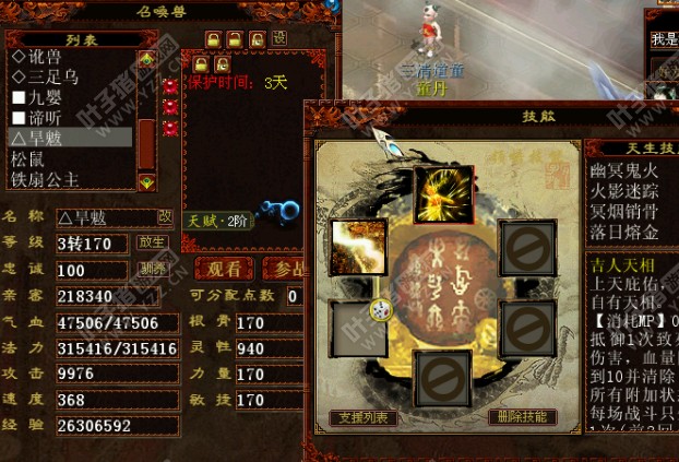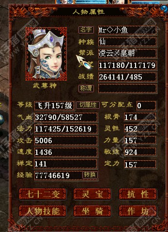 自己的女魔号和朋友的男魔号都已经被预定走了,现在队伍的男仙号也清。 >>推荐阅读:不克不是好仙!精选克炮武器一组供欣赏 3世男魔修正,飞升157男仙,天赋40点、2个孩子4854、4754评价、坐骑点化1只,别的全满,直接上图了! <<<点击进入大话西游2论坛讨论>>>