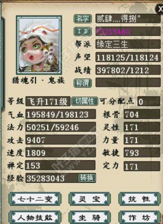 大话西游2凌烟阁飞升171鬼 孩子天资修炼双10级很赞