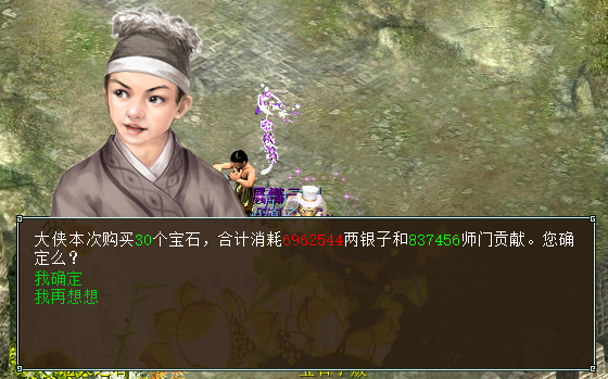 但是! 在我收了一组,然后怀着激动的占小便宜心情兴高采烈的去卖给王元宝的时候! 我的心当时碎了一地!!! 我心里简直一万只草泥马蹦过! 好了,不管了!我还是用大话币去买吧! 反正也升不了几个钱,真烦人! 购买剩下的30个宝石