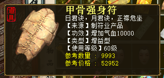 经过数次的对比,挖出我当年高三上知天文,下知地理的成神数学记忆,计算各种职业物品,最终以9.4折的价格购买了这一组甲骨强身符。 购买了一组