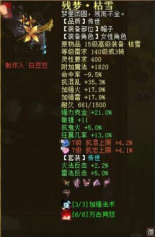 其实在2月22号法门就点满了,不过我只是小炮没上180级,只能点到8000,目前至圣神伤好像是15.7%好像我也忘了。 破壁至圣伤害是以秒出来的总伤害的百分比转换为至圣伤害。大致意思,按我的法门熟练应该是假如你能秒出100万,就有15.7万转成至圣伤害。 具体数据目前不明。 下面秀几件小装备。 玩仙族就是要不断追求更高的伤害,更为精深的研究数据和细节,在日益成长的过程当中,从小钢炮成长为惊天火力! 最后也非常感谢我们老板——梦想,理想的照顾,带我这种酱油去比武大会逛了一圈,看看我的偶像第一大炮表妹的风采。 <<<点击进入大话西游2论坛讨论>>> [编辑:韦小贝]