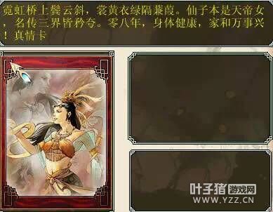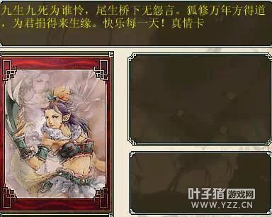 不知大家对以下的卡片是否眼熟?以前的一个活动收集卡片兑换奖励,没事会翻着看看,还是很有意思的。 每张卡片都有主角的藏头诗,其实也希望大话能推出一些怀旧活动,相信不少老玩家都快遗忘了这个卡片吧? |