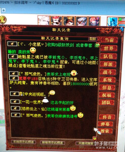 我是逝水流年服务器sky恶魔,没事喜欢刮刮乐、挖宝,虽说刮刮乐没有技巧没有规律可言,不过今天上号看到系统大吃一惊。 应该说不止是我,在线的玩家都激动了一把,这是不是说明了名字的重要性?不信看图。 <<<点击进入大话西游2论坛讨论>>> [编辑:一笑奈何]