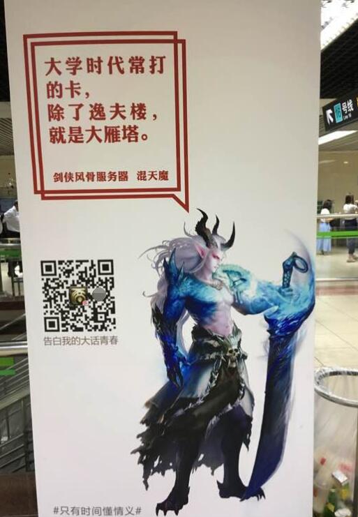 这位玩家在经过地铁站时,看到了满满都是大话十五周年的海报,作为一个老玩家,此刻还是蛮自豪滴! 很喜欢其中的一句宣传语:人生会有很多个夏天,后天我才明白,那天夏天那个长安——谁也替代不了! 下面就看看这位玩家在地铁站发现的一切,您可知道这是哪里? |