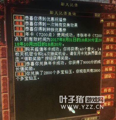 大话西游2年卡售价7200游戏点,兑换后账号可以获得14个月的月卡游戏时间,每30天100小时,另外赠送2800仙玉。 这位玩家表示:维护后直接冲了五个号的年卡,今年是第三年了,表哥你抽奖给我好点东西啊! 仙玉开盒子不错,又是永久时装、永久座驾的,垃圾的也是直接捐了,继续抽。 |