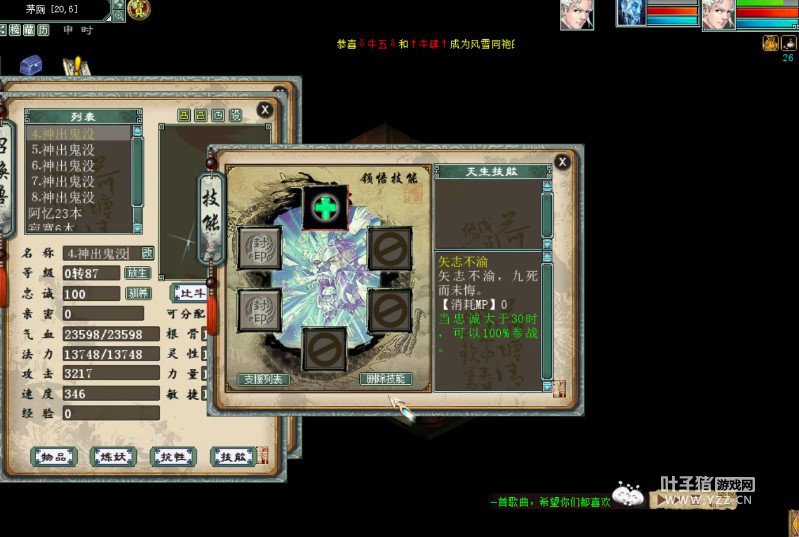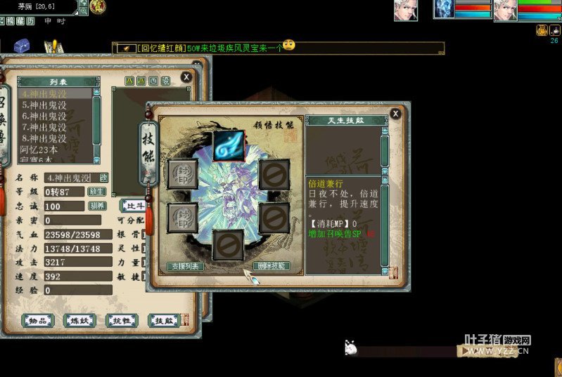 上周五新开的服务器风雪同袍一玩家直播吃万兽要诀想给冰雪魔领悟神出,在吃之前将宝宝名字改成神出鬼没,在吃万兽要诀的过程中甚至把领悟到的小春回都删除了。 不知他能否如愿以偿呢?我们来看看他直播的几率挑战。他先选择了清风桥开吃,看看他的几率: 清风桥开吃