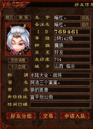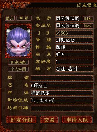 FS 大话西游2,一款风靡了十数载的游戏,承载了一批少年少女的梦,如今,这一批玩家早日成家立业,但是大话还在砥砺前行。或者我们就是用这样一种方式来继续延续我们的梦。142帮派《浪的孤傲》关键不在于等级,在于我们这颗无处安放的心有了停泊的港湾。