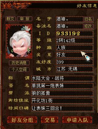 在游戏里,有这样一群玩家,他们不追求等级,单纯的追求游戏的乐趣,等级卡在142不再前进,但是实力不可小觑,让我们一起来看一下这样一个帮派,一群大男孩最后的心灵净土,精神乌托邦--剑烛沧海 浪的孤傲
