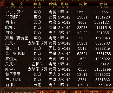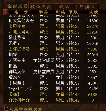 帮派成员 帮派成员 成员 帮派玩家介绍 年亮相 3美女 属性 孩子 功绩 绝境